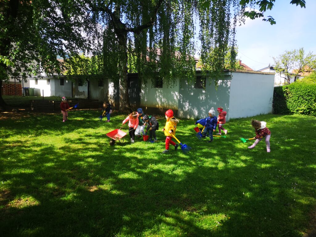 22. aprila smo obeležili dan Zemlje, dan našega planeta. Na ta dan smo se spomnili, kako lepa in edinstvena je naša Zemlja. Spoznali smo, kako je potrebno varovati planet, ki nam omogoča življenje. Poslušali smo pravljice in pesmi, ogledali smo si poučni film in risanko, očistili smo naše igrišče, tekli smo podnebni tek, veliko smo se pogovarjali o ločevanju odpadkov. Odpadne plastenke smo ponovno uporabili za likovno ustvarjanje. Radi živimo v zdravem okolju.