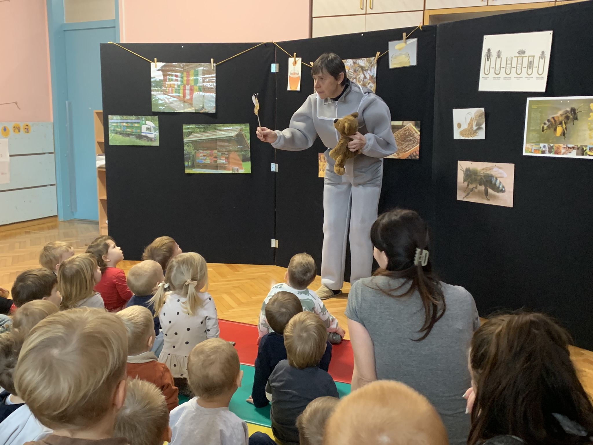 Načrtovali smo dejavnosti iz različnih področij Kurikuluma za vrtce. Otroci so z veseljem poslušali zgodbe, pesmi in uganke na temo »slovenske prehrane« ter se igrali prstno igro Čebele in panj. Obiskala nas je čebelarka, ki nam je predstavila svojo dejavnost in pokazala opremo, ki jo potrebuje. Otroke je navdušila z lutko čebelice, pesmico Zum-zum in gibalno igro, v kateri so se otroci prelevili v čebelice in nabirali »cvetni nektar«.
