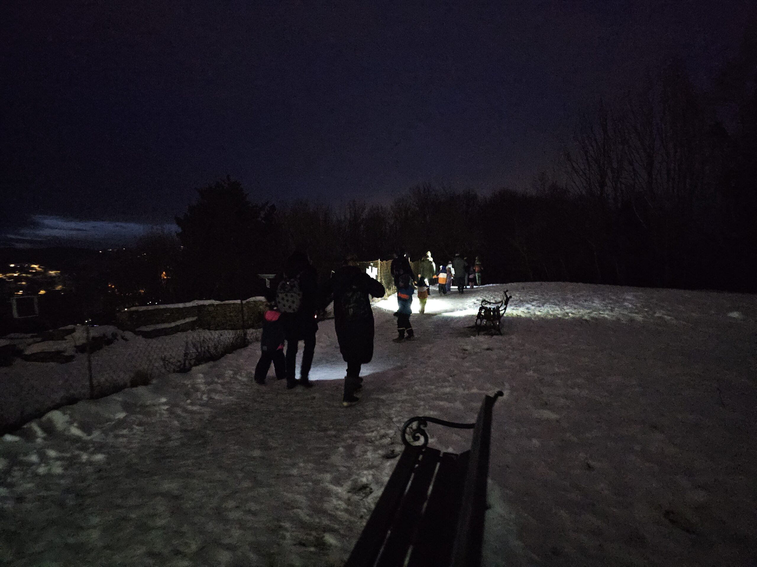 Po poti smo uporabljali svetilke, s katerimi smo si osvetljevali pot in tako dodatno poskrbeli za varno hojo ter popestrili vzdušje. Otroci so z veliko mero poguma, vztrajnosti in navdušenja premagovali »ovire«, si med seboj pomagali ter dokazali, da znajo sodelovati.