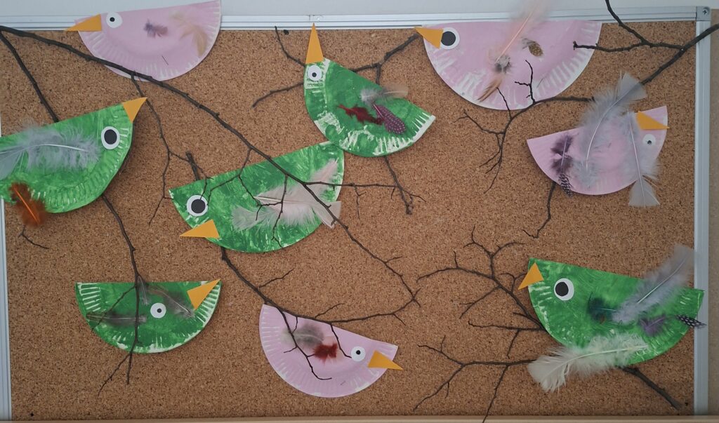 Topli sončni žarki so nas prijetno greli in nas vabili k ustvarjanju. Pod spretnimi malimi prstki so nastajali sončki, ptički in cvetlice – vsak izdelek je nosil svojo zgodbo, polno otroške domišljije.