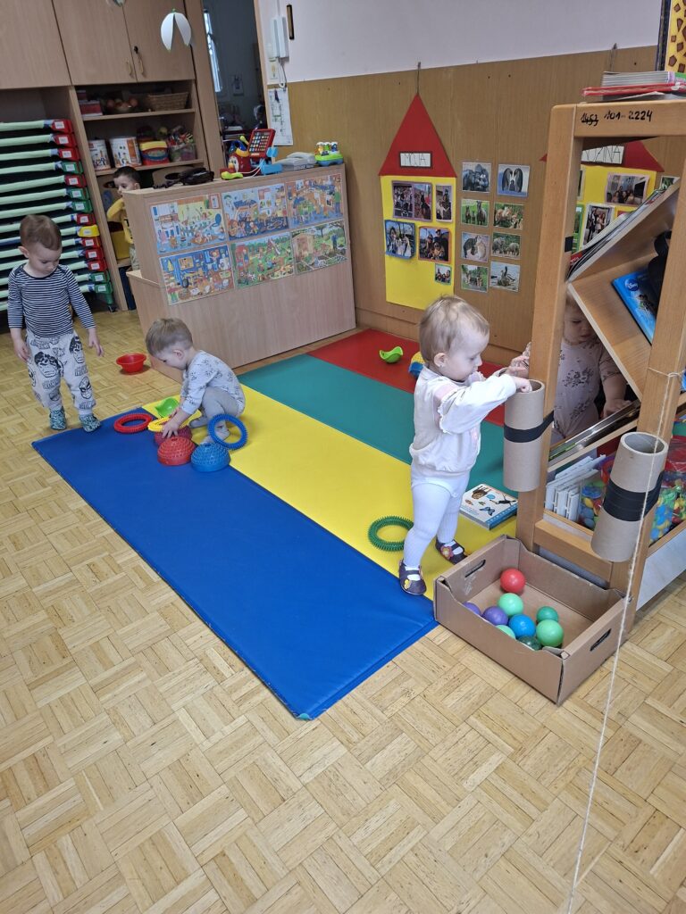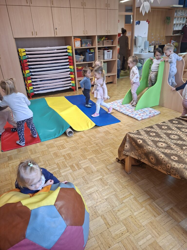Veliko časa smo preživeli na prostem, kjer ni manjkalo teka, smeha in raziskovanja. Lovili smo sončne žarke in uživali v brezskrbni igri. Ko pa nas je presenetil dež, smo igro preselili v notranje prostore, kjer smo skozi gibanje in igro krepili svoje spretnosti.
