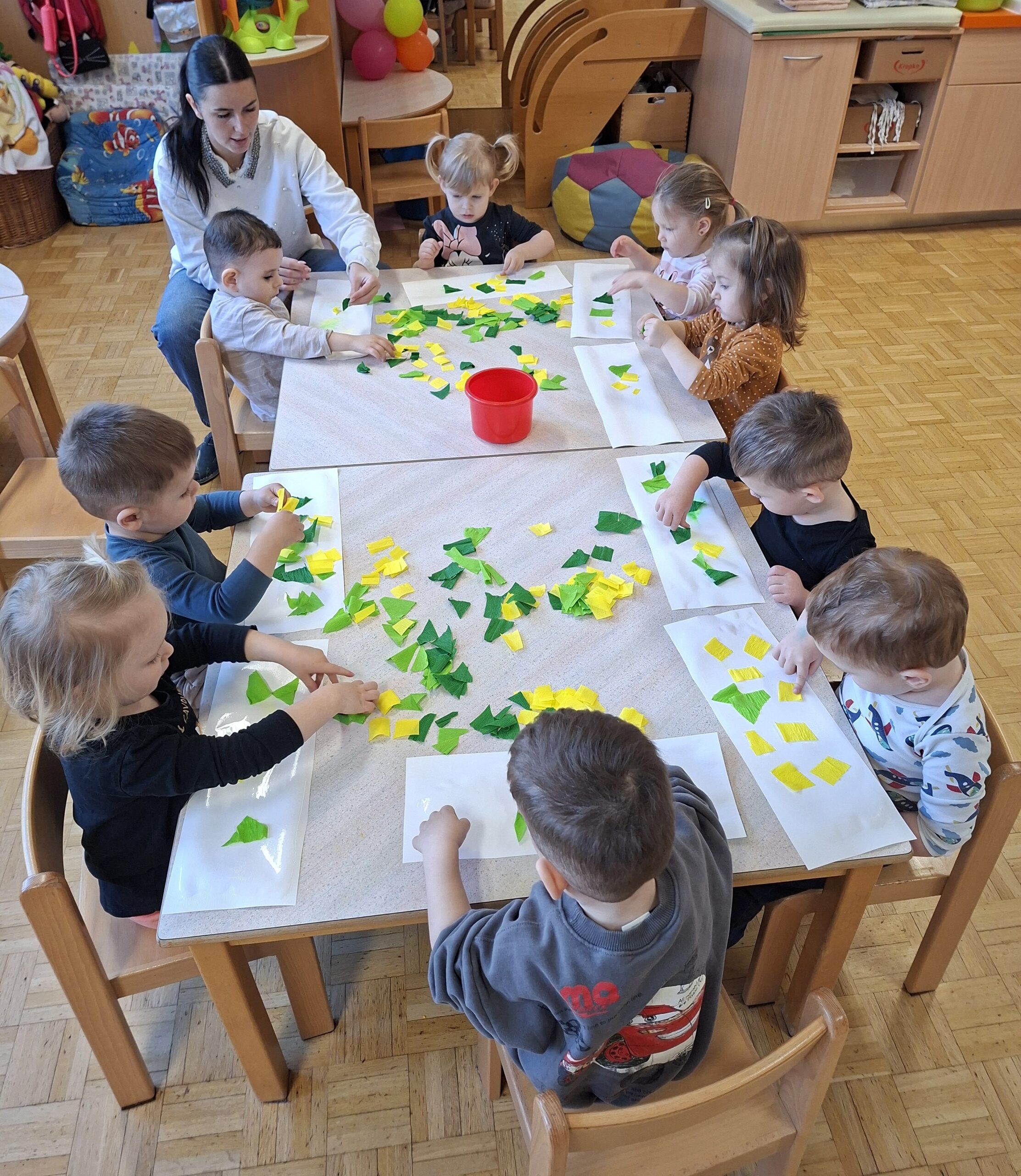 Topli sončni žarki so nas prijetno greli in nas vabili k ustvarjanju. Pod spretnimi malimi prstki so nastajali sončki, ptički in cvetlice – vsak izdelek je nosil svojo zgodbo, polno otroške domišljije.