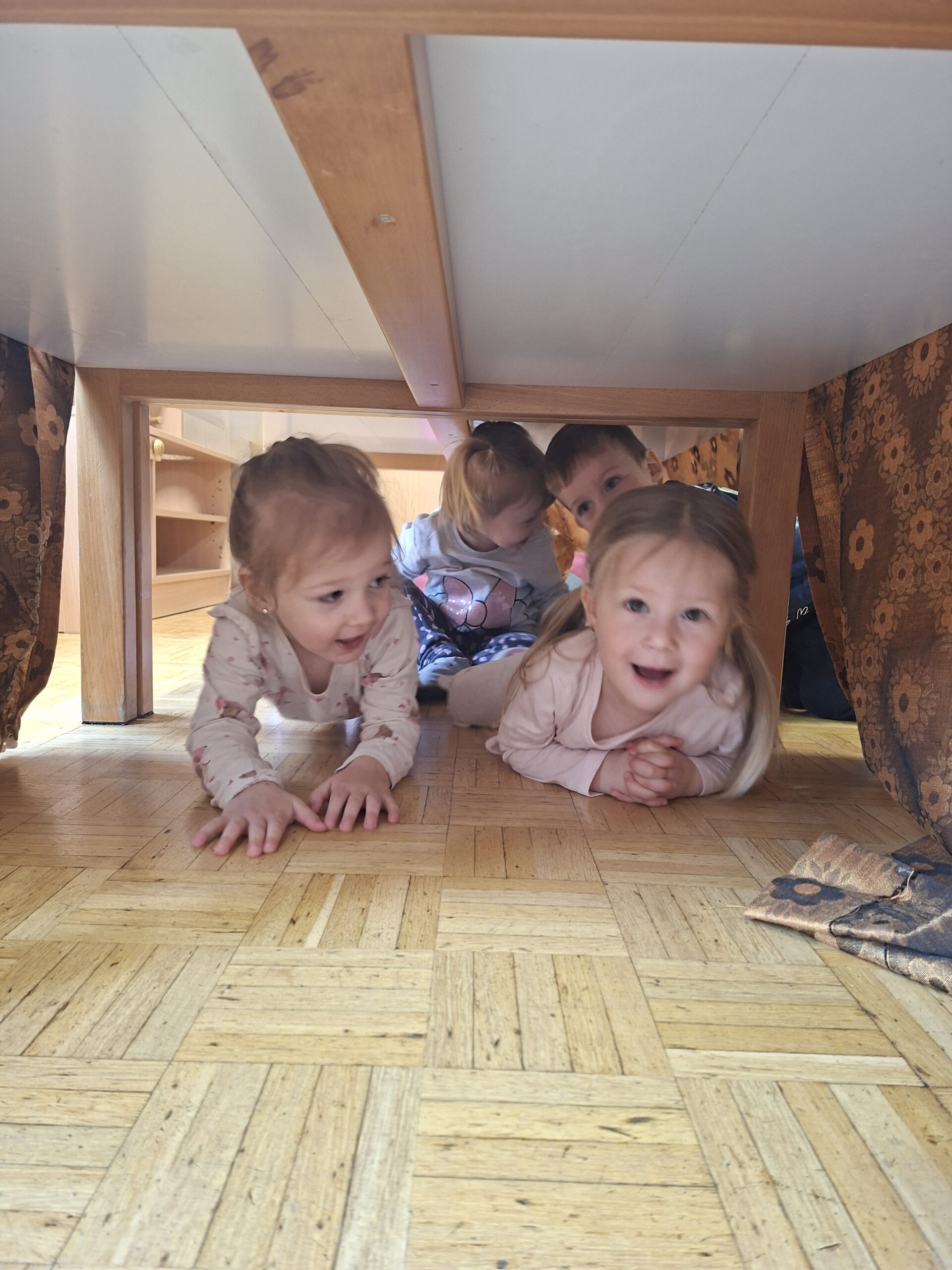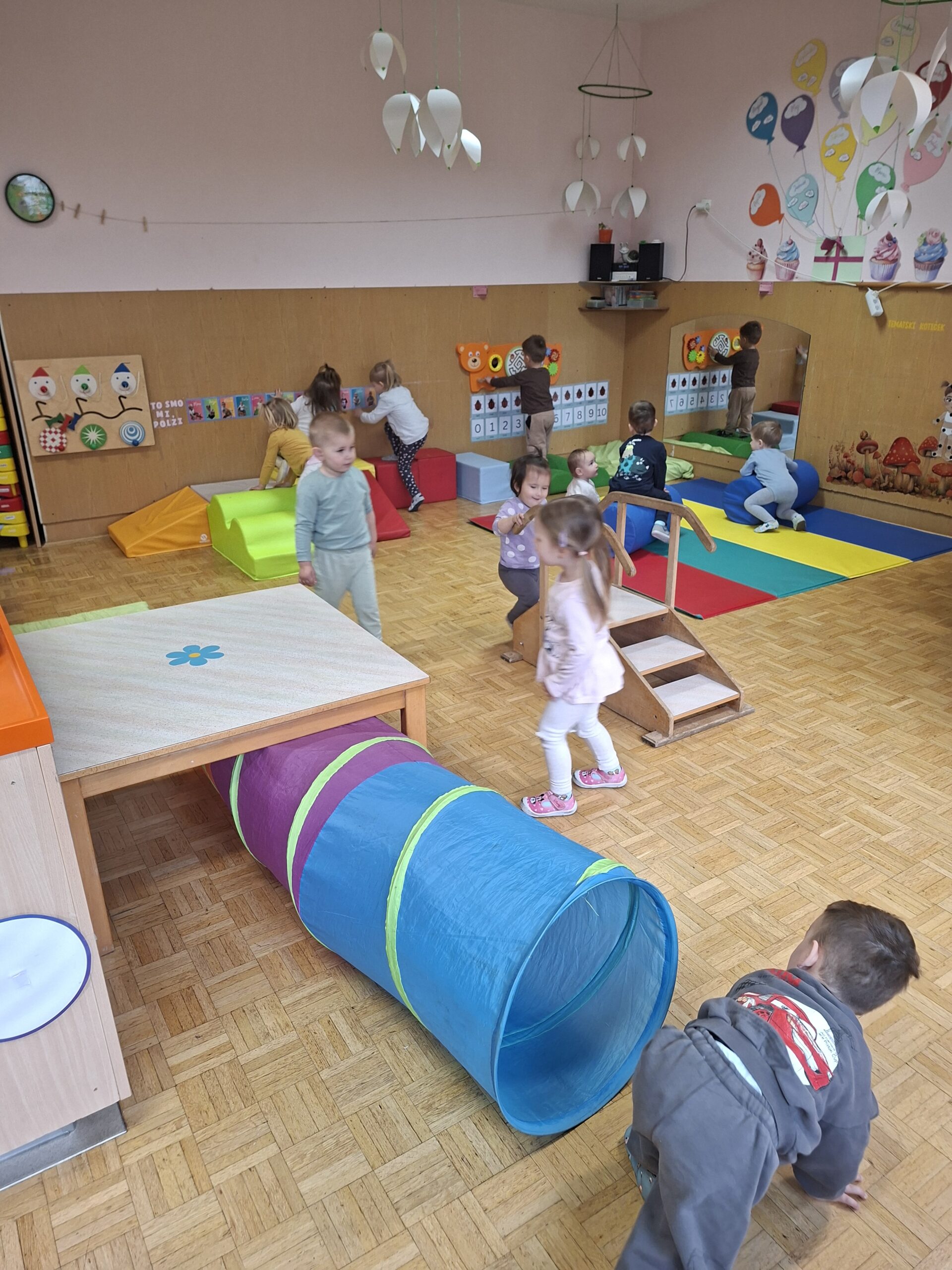 Veliko časa smo preživeli na prostem, kjer ni manjkalo teka, smeha in raziskovanja. Lovili smo sončne žarke in uživali v brezskrbni igri. Ko pa nas je presenetil dež, smo igro preselili v notranje prostore, kjer smo skozi gibanje in igro krepili svoje spretnosti.