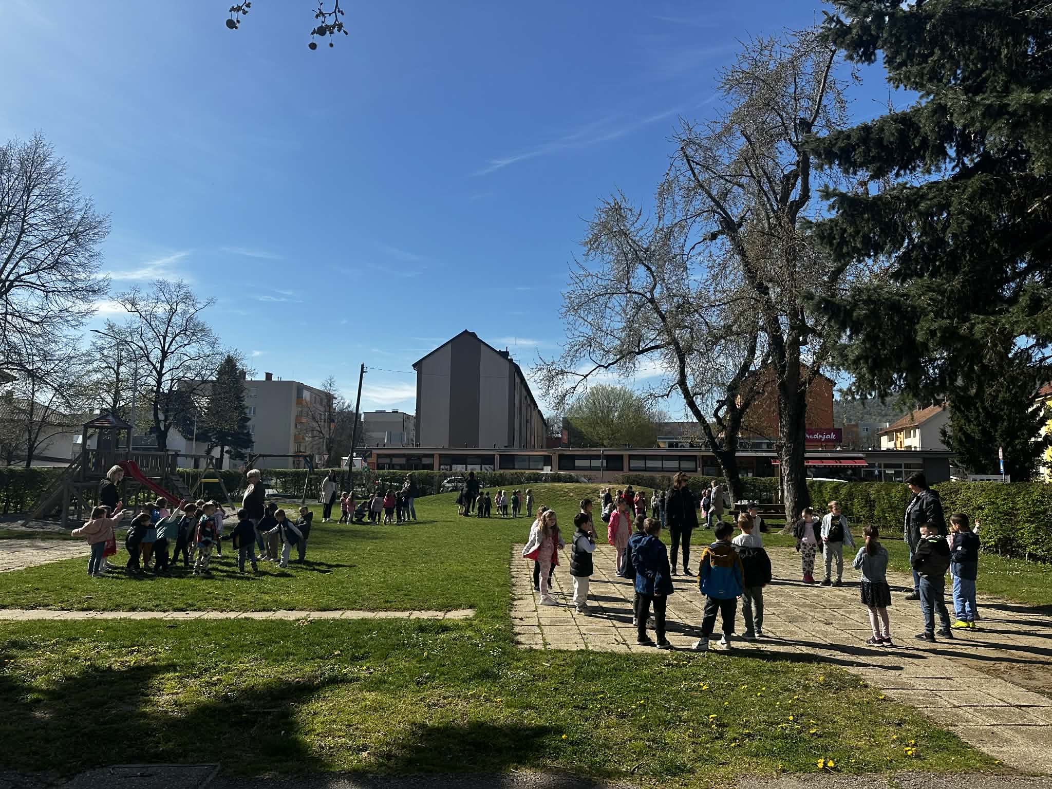 Vseh devet skupin enote Betnavska, skupaj 121 otrok, se je 7. aprila udeležilo podnebnega teka, organiziranega v sklopu Ekošole. Dogodek smo začeli z ogrevanjem, s katerim smo se pripravili na športni izziv, nato pa je štafetna palica potovala od najmlajše do najstarejše skupine.
