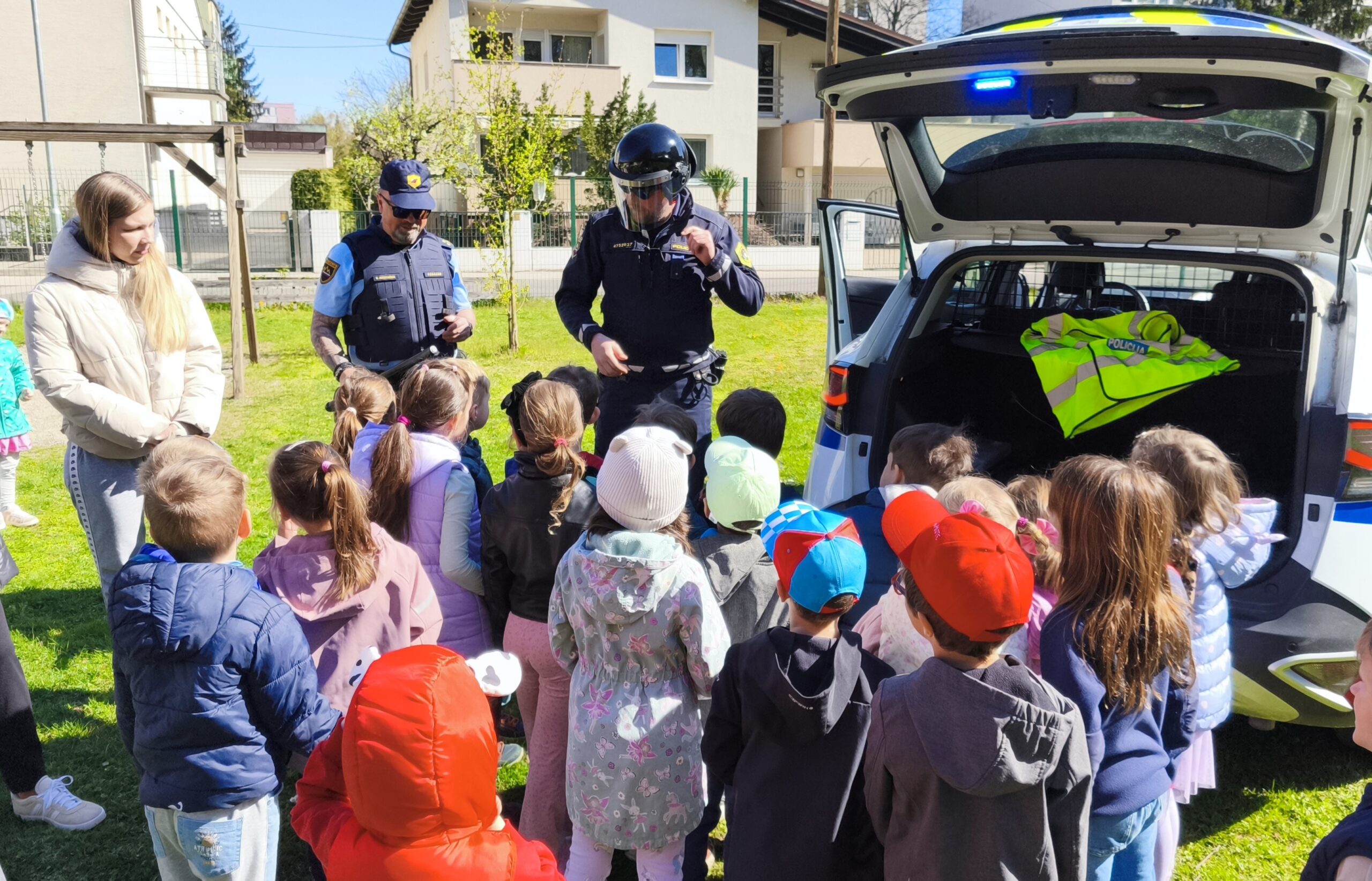 Posebno veselje in navdušenje pa je med otroki vzbudil prihod policijske maskote, ki je s svojo prisrčnostjo pričarala nasmehe na otroških obrazih.